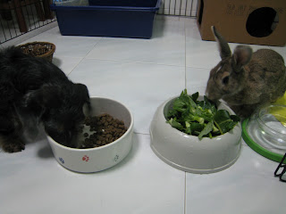 It's dinner time! Both of us are so hungry waiting for our meals!